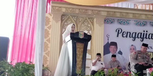 Bupati Tanggamus Dewi Handajani menyampaikan Kegiatan pengajian akbar ini adalah kegiatan yang sudah lama ditunggu-tunggu dan Alhamdulillah hari ini dapat kita laksanakan, semoga kegiatan ini menjadi kegiatan yang mendapatkan Barokah dan Ridho dari Allah subhanahu wa ta’ala.