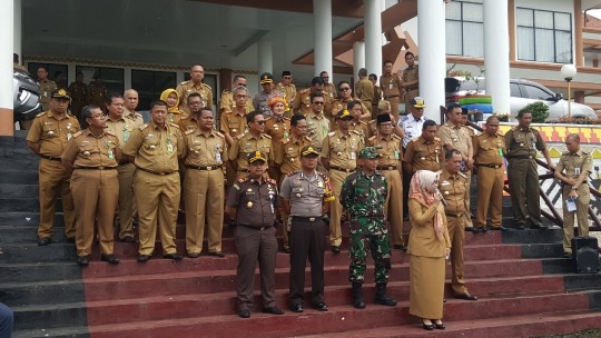 Kotaagung ( HS ),- Bupati Tanggamus Hj. Dewi Handajani didampingi Wakil Bupati Hi. AM Syafi’i, Dandim 0424 Letkol. Anang Hasto, Kajari David Palapa Duarsa, Wakapolres Tanggamus Kompol Andik Purnomo S, Pj Sekda Hamid Lubis H, Ka. OPD melepas Satgas Penanganan Bencana 90 Personil dari Unsur TNI, Polri, BPBD, Dishub, Dinas Kesehatan dan Dinas Sosial bertempat di Halaman Pemkab setempat, Senin ( 3/12/2018 ).