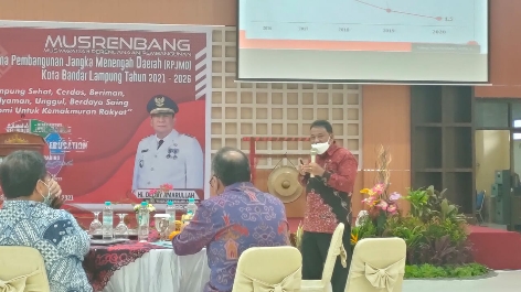“Saya berharap dalam penyusunan RPJMD Kota Bandar Lampung dapat lebih relevan menjawab permasalahan pembangunan. Diperlukan strategi dan arah kebijakan serta program yang inovatif, selayaknya program yang dirumuskan akan dapat dirasakan manfaatnya oleh masyarakat secara optimal”, paparnya.