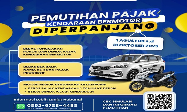 Pemutihan Pajak Kendaraan Bermotor Lampung Diperpanjang Hingga 31 Oktober 2025