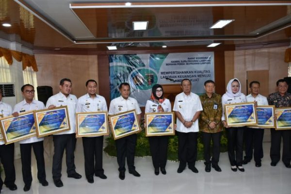 Dalam sambutannya, Alfikar Siringu Ringu menyampaikan bahwa sebanyak 13 Kabupaten/Kota di Provinsi Lampung mendapatkan capaian opini WTP. “Pemda yang 4 kali secara berturut turut mendapatkan capaian opini WTP, pertumbuhan ekonominya lebih baik dari Pemda yang tidak dapat WTP. 5 dari 7 Pemda yang berhasil WTP 4 kali berturut turut dapat menurunkan tingkat kemiskinan dari indeks kemiskinan nasional ” ujarnya membacakan laporan dalam sambutannya.