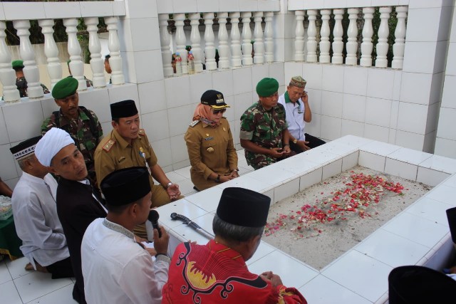 Menggala (HS) – Dalam rangka HUT ke- 74 Kodam II/Sriwijaya tahun 2020, Dandim 0426 Tulang Bawang Letkol Inf Kohir dan Bupati Tulang Bawang Hj Winarti,S.E, M.H, memimpin Rombongan Ziarah dan Napak Tilas penyebaran Agama Islam, menggali sejarah kearifan lokal Kabupaten Tulang Bawang, Senin (30/12/2019).