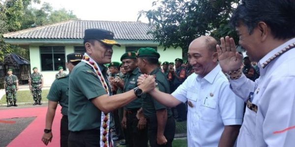 Tanggamus (HS) – Pj Bupati Kabupaten Tanggamus Mulyadi Irsan, menyambut Kunjungan Kerja Danrem 043/Gatam ke Kodim 0424/Tanggamus, Kamis (27/06/2024).