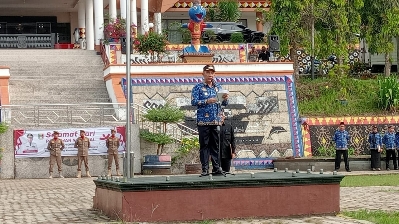 Tanggamus (HS) ~ Pj Bupati Tanggamus Mulyadi Irsan, pimpin upacara Hari pahlawan tahun 2023, bertempat di lapangan pemkab Tanggamus, Senin (10/11/2023).