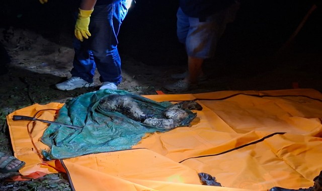 Setelah dilakukan penggalian ulang, ditemukan tiga karung plastik yang berisi potongan tubuh manusia yang diduga merupakan bagian tubuh korban.