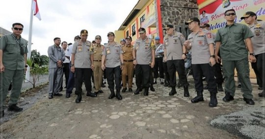 Kapolri Jenderal Tito Karnavian mengunjungi Mapolres Lampung Selatan untuk melihat kondisi setelah terjadi kebakaran beberapa waktu lalu.