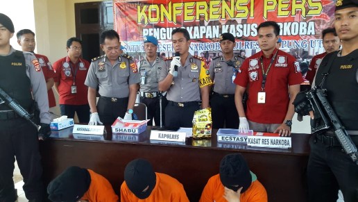 Berdasarkan hasil penyelidikan oleh team cobra Satresnarkoba, kemudian dilakukan undercover buy (anggota yang menyamar sebagai pembeli) kemudian tersangka menentukan tempat atau lokasi transaksi, saat hendak dilakukan transaksi tersangka bernama Sri (42) warga Gunung Sulah, Sukarame Bandar Lampung itu berhasil diamankan oleh anggota dan diamankan barang bukti 97 butir pil ekstasi (inex) dan satu bungkus besar plastik berisi Shabu.