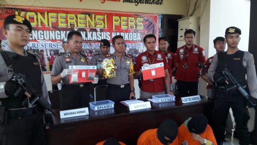 “Untuk para tersangka akan di jerat dengan pasal Pasal 114 ayat (2) dan atau Pasal 112 ayat (2) dengan ancaman hukuman pindana seumur hidup,” ujar Kapolres.