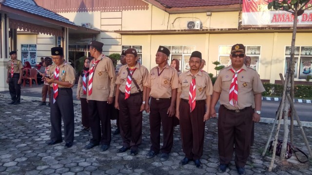 Hadir dalam upacara itu, Kapolres Mesuji, Asisten III, Ka Kwarda Pramuka Mesuji, Ka Kwarcap, pelatih pramuka, kaka pembina, Siswa siswi adik pramuka, dan PJU Polres Mesuji, dan ratusan anggota pramuka..
