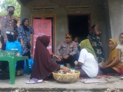 Disela-sela memberikan bantuannya kepada warga, Kapolres sesekali berinteraksi langsung dengan warga yang dimaksud. Goyonan ringan dan nasehat agar tetap bersemangat juga dilontarkan hingga mampu membuat tersenyum sejumlah warga setempat.