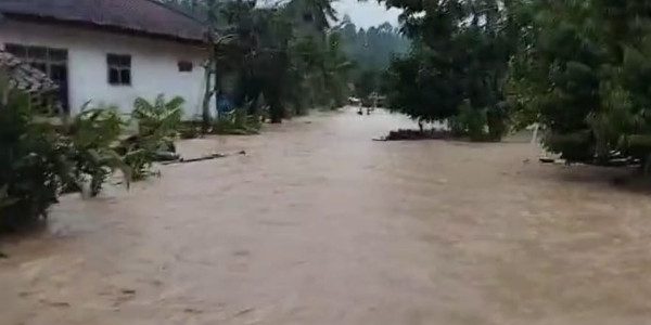 Tanggamus (HS) – Hujan deras yang mengguyur Kabupaten Tanggamus sejak Senin (21/4/2025) dini hari menyebabkan banjir di dua kecamatan, yakni Pugung dan Bulok. Sejumlah titik dilaporkan tergenang air, rumah warga terdampak, bahkan jembatan warga hanyut terbawa arus.