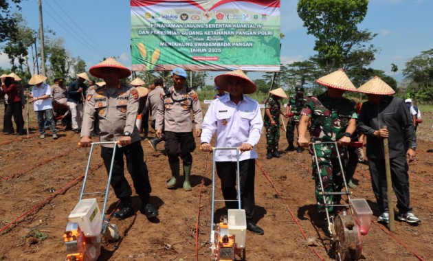TANGGAMUS (HS) — Dalam rangka mendukung program ketahanan dan swasembada pangan nasional tahun 2025, Polres Tanggamus melaksanakan kegiatan Penanaman Jagung Serentak Kuartal IV sekaligus Peresmian Gudang Ketahanan Pangan Polri di Pekon Pulau Panggung, Kecamatan Pulau Panggung, Kabupaten Tanggamus, Rabu (8/10/2025).