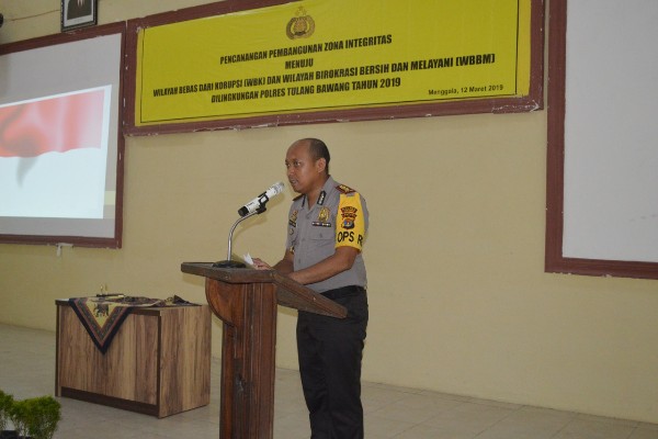 Menggala (HS),- Polres Tulangbawang menggelar acara pencanangan ZI (Zona Integritas) menuju WBK (Wilayah Bebas Korupsi) dan WBBM (Wilayah Birokrasi Bersih dan Melayani), di GSG Wira Satya Polres Tuba, Selasa (12/03/2019),