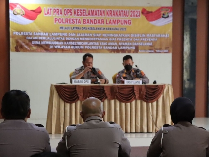 Dilaksanakan di Aula Patria Tama Polresta Bandar Lampung, Kegiatan dihadiri oleh Kabag Ops Polresta Bandar Lampung Kompol Oscar Eka Putra dan Kasat Lantas Polresta Bandar Lampung AKP M Rohmawan dan diikuti personil yang terlibat dalam Ops Keselamatan Krakatau 2023.