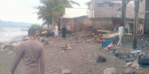 Di Pesisir Kelurahan Pasar Madang, Kota Agung, belasan rumah warga rusak dan sebagian lainnya terpaksa mengungsi untuk menghindari terjangan ombak susulan dan Polsek Kota Agung telah melakukan sejumlah langkah bersama pihak terkait.