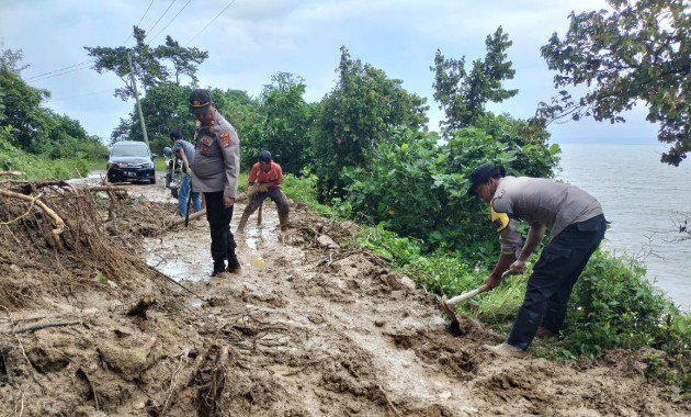 Menyikapi hal tersebut, Kapolsek Limau Iptu Dedi Yanto bersama anggotanya serta masyarakat sekitar berjibaku membersihkan material longsoran menggunakan alat seadanya, seperti cangkul dan sekop.