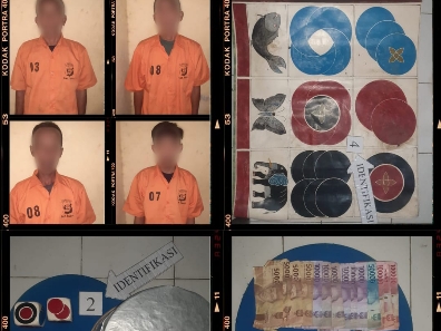 Bersamaan dengan penggrebekan ini, petugas mengamankan sejumlah barang bukti yang diantaranya adalah uang tunai pecahan Rp 1.000.- (seribu rupiah), Rp 2.000 (dua ribu rupiah), Rp 5.000.- (lima ribu rupiah), Rp 10.000.- (sepuluh ribu rupiah), Rp 50.000.- (lima puluh ribu rupiah), Rp 100.000.- (seratus ribu rupiah) dengan total sejumlah Rp 479.000 (Empat Ratus Tujuh Puluh Sembilan Ribu Rupiah).