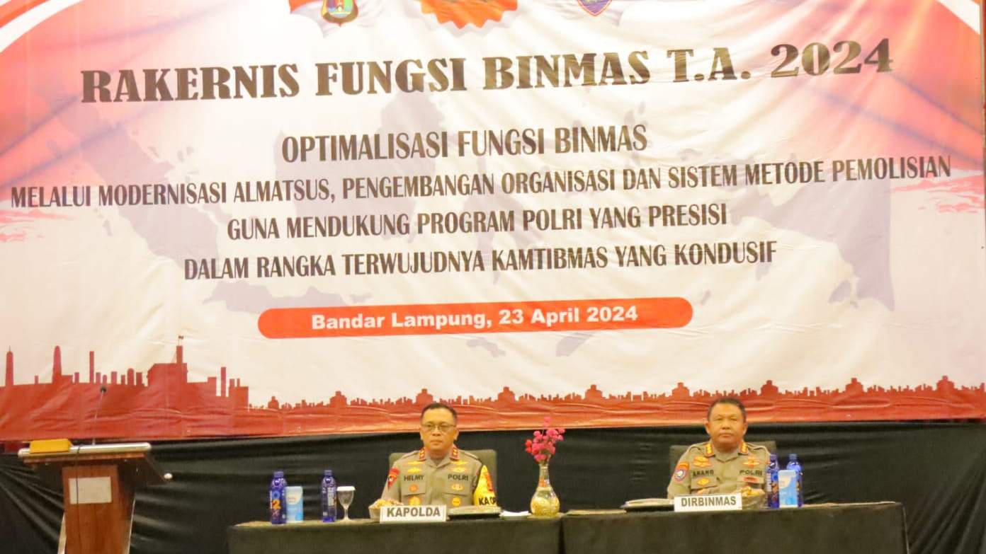 Bandar Lampung (HS) – Kapolda Lampung Irjen Pol Helmy Santika menghadiri acara sekaligus membuka kegiatan rakernis Fungsi Pembinaan Masyarakat (Binmas) T.A 2024, rakernis dilaksanakan di Hotel Horizon Lampung. Selasa(23/4/2024)