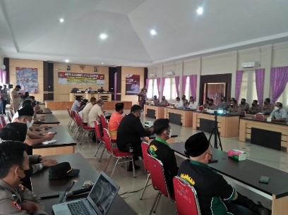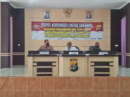Kota Agung (HS) – Rakor Lintas Sektoral Kesiapan Pengamanan Idul fitri 1443 H di masa Pandemi covid-19 Kabupaten Tanggamus, bertempat di Aula Paramasatwika Polres Tanggamus, Kamis (22/04/2022).