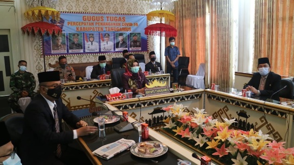 Turut bersama Bupati di Ruang Rapat Utama, Forkopimda Tanggamus, Sekretaris Daerah Hamid Heriansyah Lubis, Staf Ahli Bupati, Asisten Bidang Ekobang Sukisno dan Kadis Kominfo Sabaruddin.