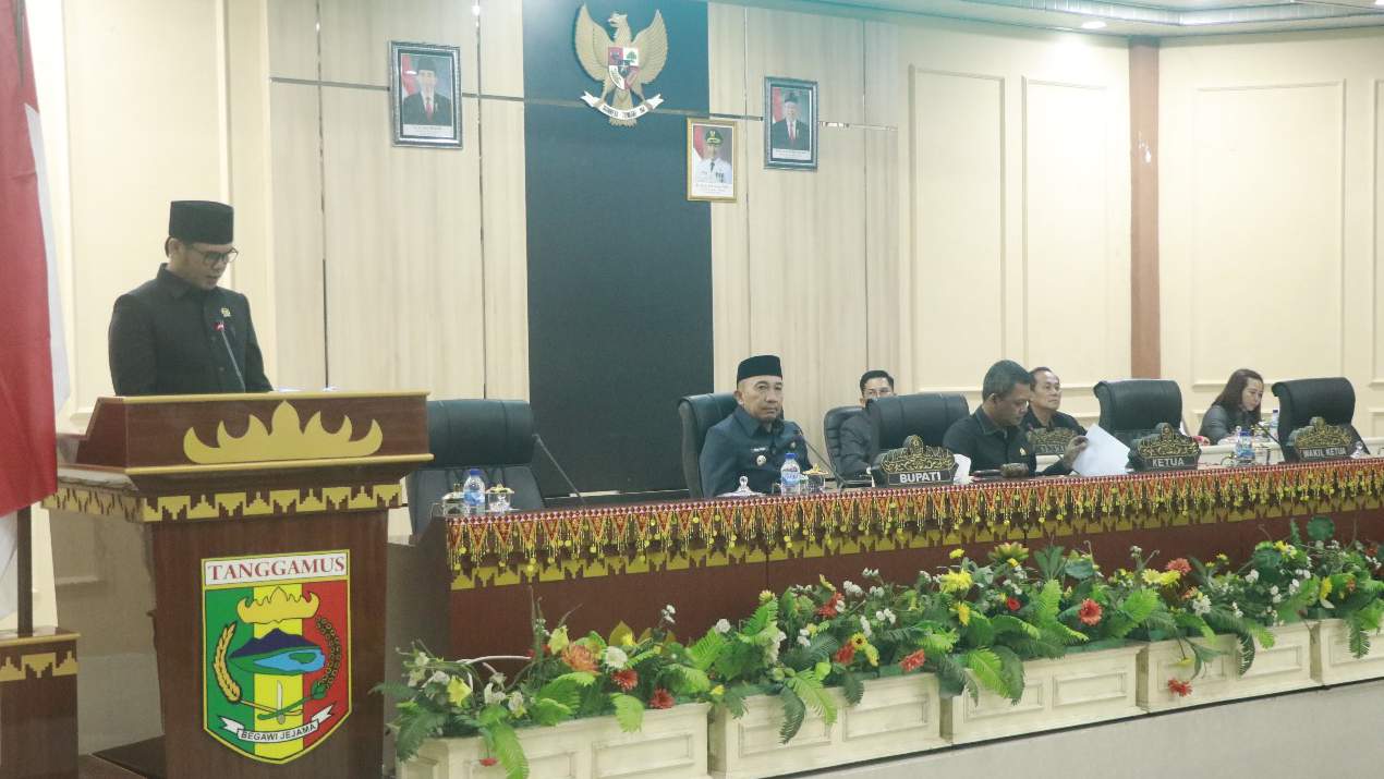 Rapat Paripurna dihadiri Pj. Bupati Mulyadi Irsan, Forkopimda, para Asisten, Kepala Dinas, Kepala Badan, Kepala Bagian, Camat Se – kabupaten Tanggamus, Insan Pers dan Para Undangan.