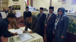 Kota Agung (HS),- Bertempat di Ruang Rapat DPRD Kabupaten Tanggamus dilakukan rapat paripurna Penandatangan KUA PPAS 2019 antara Bupati Tanggamus Bunda Dewi Handajani dengan Pimpinan DPRD, Heri Agus Setiawan, Rusli Shoheh, Sunu Djatmiko, Aris Budiarto, Selasa (30/10/2018).