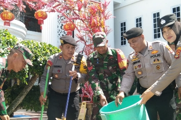 Bandar Lampung (HS) – Puluhan personel Polresta Bandar Lampung dan Kodim 0410 Kota Bandar Lampung diterjunkan dalam kegiatan bersih bersih tempat ibadah, Rabu (07/02/2024) pagi.