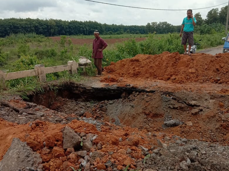 Jalan Provinsi Di Margamulyo Tulangbawang Barat Putus Diterjang Banjir