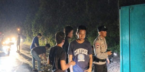 Gerak Cepat Polsek Kota Agung Identifikasi Kecelakaan Truk Batu Bata Terbalik dan Terbakar di Way Gelang