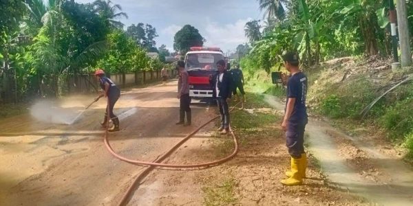Bersama Damkar, Polsek Semaka Lakukan Pembersihan Material Tanah dan Bebatuan di Jalan Lintas Barat