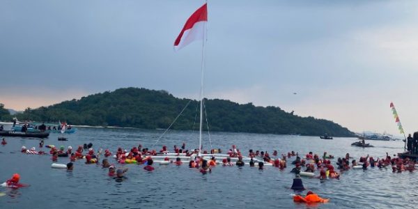 Pengibaran Merah Putih di Laut Mutun Pesawaran Pecahkan Rekor MURI