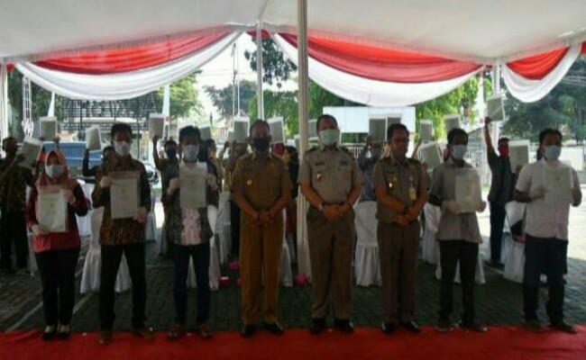 Lampung, Tanggamus Rabu 5 Februari 2020Rabu 5 Februari 2020 Bupati Dewi Handajani Menyerahkan Sertifikat Program PTSL