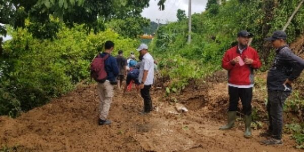 Dikarenakan kondisi medan jalan yang sempit, sehingga alat berat tidak dapat diterjunkan, makannya kita saling bahu membahu melakukan gotong royong dengan masyarakat guna membersihkan material tanah yang menutupi jalan, dan saat ini telah dapat dilalui kendaraan, ujar Sofyan.