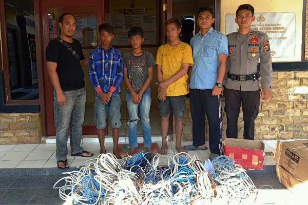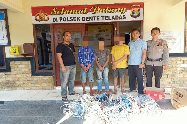 “Pelapor langsung menghubungi petugas dari Polsek Dente Teladas sambil terus mengawasi situasi, sekira pukul 17.00 WIB, petugas kami tiba di TKP dan langsung melakukan penangkapan terhadap para pelaku yang sedang asyik mengupas kabel tembaga instalasi listrik,” ungkap AKP Rohmadi.