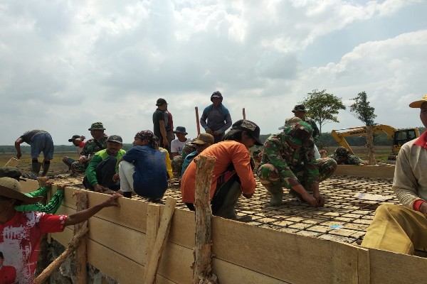 Menggala (HS),- Penimbunan kiri kanan bahu jalan sepanjang 1000 meter TMMD di Desa Bedarau Indah, baru mencapai 19% dan gorong-gorong 40%, laporan terkini Selasa (02/07/2019).