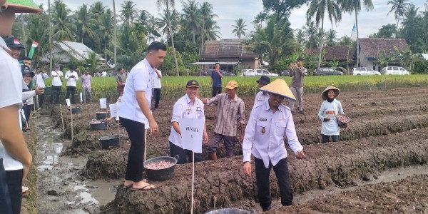 Tanggamus (HS) – Wakil Bupati Tanggamus Agus Suranto mewakili Bupati lakukan Penanaman Bawang Merah kualitas Brebes Bima bertempat di Pekon Banjar Sari Kecamatan Wonosobo, Rabu (14/05/2025).