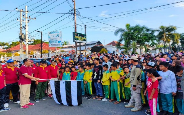 Start Jalan Sehat mulai dari Lamban Balak Bupati Tanggamus menuju Jalan Raya Way Jelai Pekon Negeri Ratu dan menuju Muara Indah finis Ruang Terbuka Hijau Kota Agung.