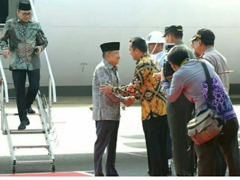 Bandar Lampung (HS) – Gubernur Lampung, Muhammad Ridho Ficardo jemput kedatangan Wakil Presiden, Jusuf Kalla (JK) di Bandara Radin Inten II, Branti Raya, Natar, Sabtu (28/7/2018).