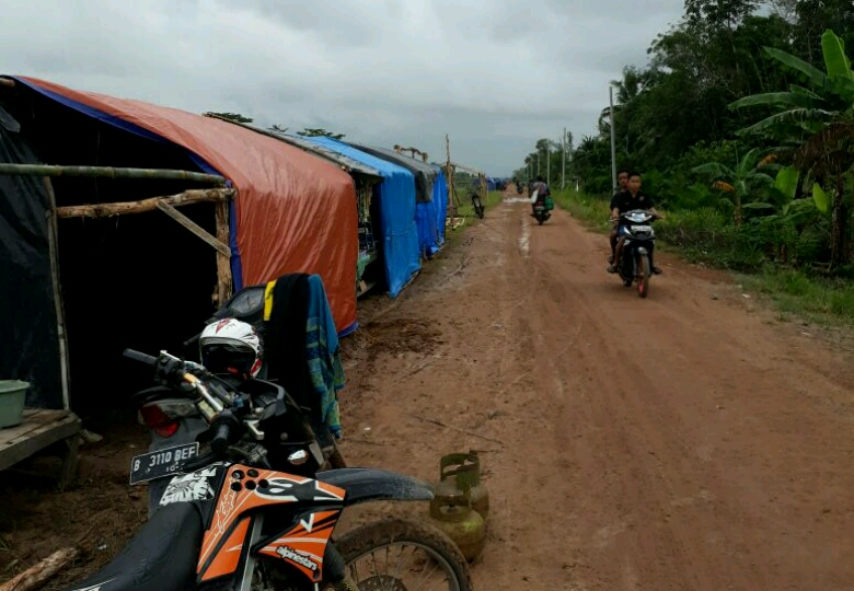 Jalan Poros Rawapitu yang posisinya sedikit lebih tinggi, saat ini menjadi satu-satunya tempat untuk mendirikan tenda pengungsian bagi masyarakat Kecamatan Rawapitu Tulangbawang.