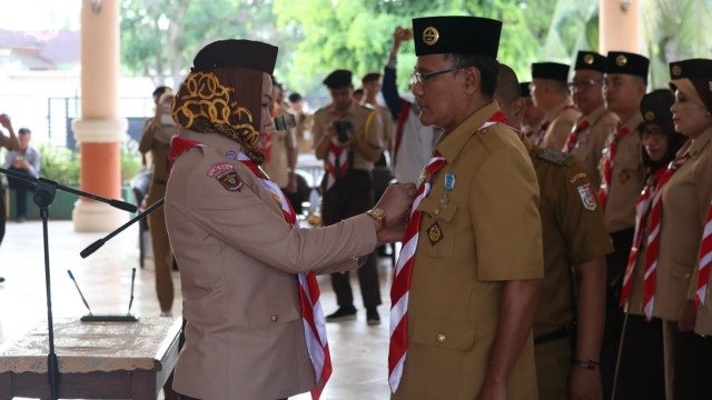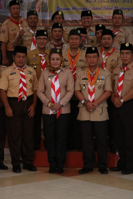 Tulangbawang (HS),- Bupati Winarti selaku Kamabicab Pramuka kabupaten Tulangbawang, melantik Akhmad Suharyo sebagai Ka Kwarcab sekaligus mengukuhkan struktur kepengurusannya, Selasa (4/12/2018).